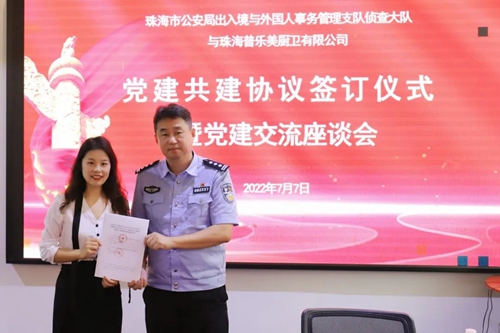 座談會(huì)上,珠海市公安局出入境與外國(guó)人事務(wù)管理支隊(duì)偵查大隊(duì)政委譚大江表示:我們將共同致力于黨建資源互享,黨員隊(duì)伍互動(dòng),共辦實(shí)事好事,共同搭建政企交流溝通的橋梁紐帶,護(hù)航民營(yíng)經(jīng)濟(jì)健康發(fā)展。