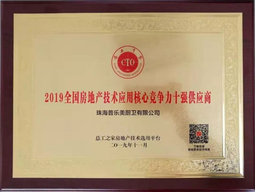 2019年11月22日,普樂美受邀參加第十二屆全國房地產(chǎn)總工(CTO)年會,并接受授牌表彰,榮獲“2019全國房地技術(shù)應(yīng)用核心競爭力十強供應(yīng)商”!